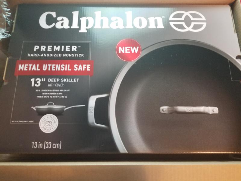 I love the Calphalon skillet. We are a family of 7 so the Calphalon Premier Nonstick 13-Inch Deep Skillet comes in hand. The size is perfect. I can cook 7 hamburgers in it with no issues. The depth is great for rice, spaghetti, noodle, and many other things. One thing I love is the handle doesn't get hot while using it. Another bonus I love is its non-stick. Even when I cook cheeseburgers and cheese gets in the pan. It doesn't stick. It is easy to clean. It is dishwasher safe and it is also oven safe. This is always my go-to pan as I use it for almost every meal. I would highly recommend it to any family. It is a very great skillet and is heavy-duty.