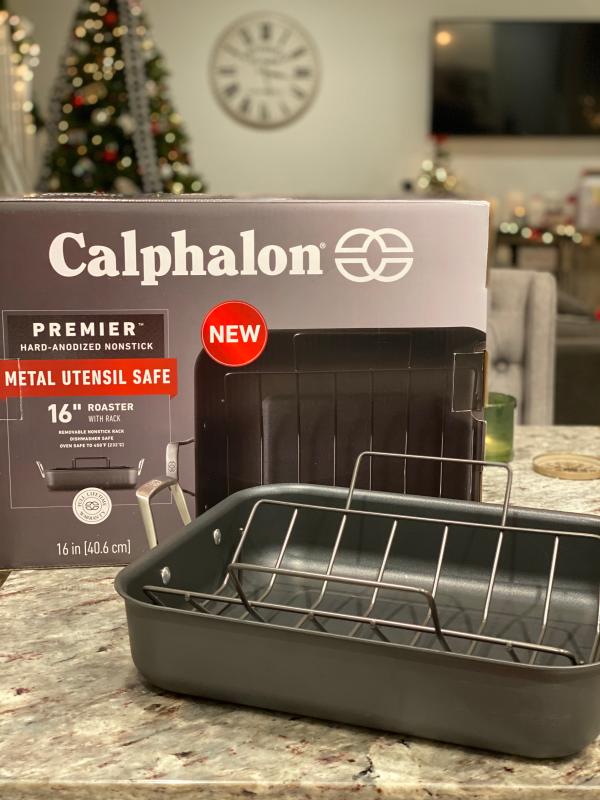 The Calphalon easy roaster makes holiday meals a breeze. It’s the perfect size for any holiday bird, and the lift-out rack makes it easier to get to all of those delicious gravy drippings.