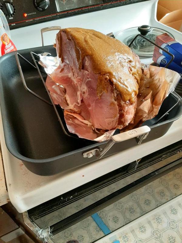 Pros: Excellent size for big turkeys and roasts Great handles for gripping It wasn't too heavy and easily managed Cons: The interior finish had an unusual texture I had to wipe the rack vigorously to get it Clean but everything did come off The pan was not what you call nonstick, I had to put about 1-2 inches of water in The pan and scrape it hard to get the Grease buildup off. It did come clean though without any residue The non stick description is very misleading. I don't know if I would recommend it