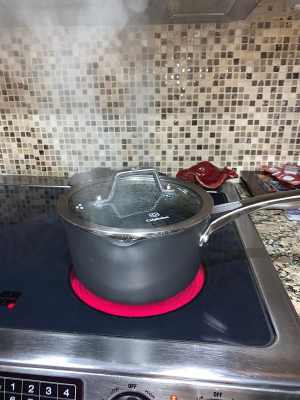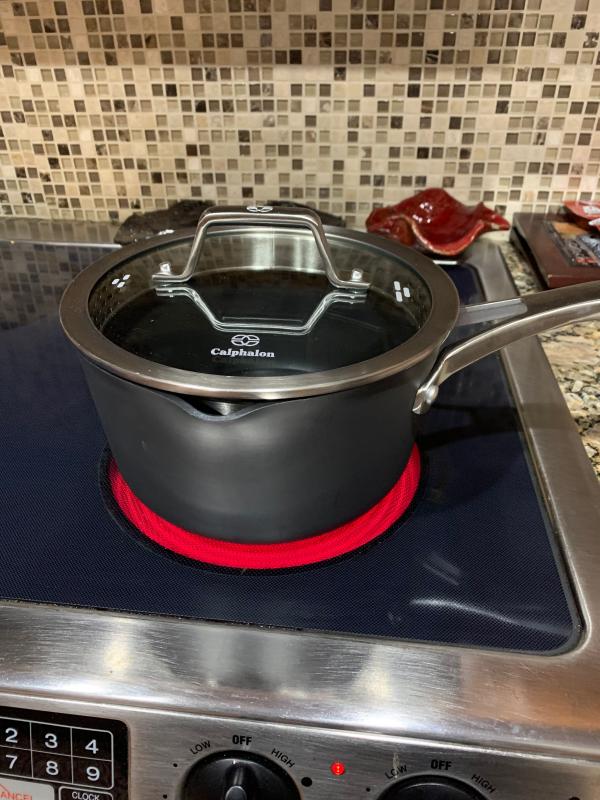 This Calphalon pot has become one of my kitchen staples. The size is perfect for making soups, pasta, sauces, or even small batches of stews, and it heats evenly without hot spots. I’ve noticed that the nonstick surface really does its job—food doesn’t cling, and cleanup is quick with just a sponge and a bit of soap. The handle feels sturdy and stays cool while cooking, which is a big plus. It’s also surprisingly lightweight for how durable it feels, and the glass lid lets me keep an eye on things without lifting it. After several months of use, there’s no peeling or scratching, even with frequent cooking.
