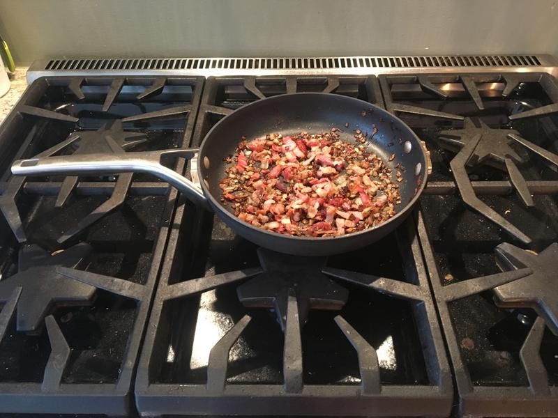 I have cooked everything in this pan! I love it. Eggs slide off with ease and scramble perfectly. Steak is sautéed evenly and thoroughly cooked throughout. It is very easy to clean. Wipes off quickly and easily and does not leave a smell behind. I even put it in the oven and made German pancakes and they came out great. Bacon is also crisp and evenly fried in this beautiful pan. I wish it came with a lid, but I still love it.
