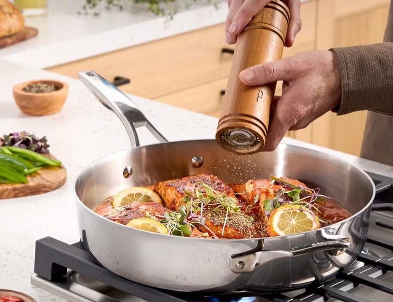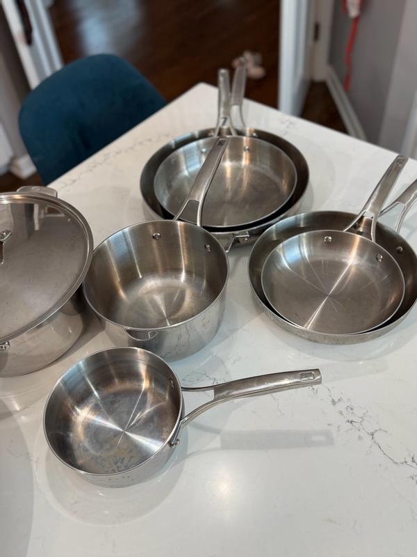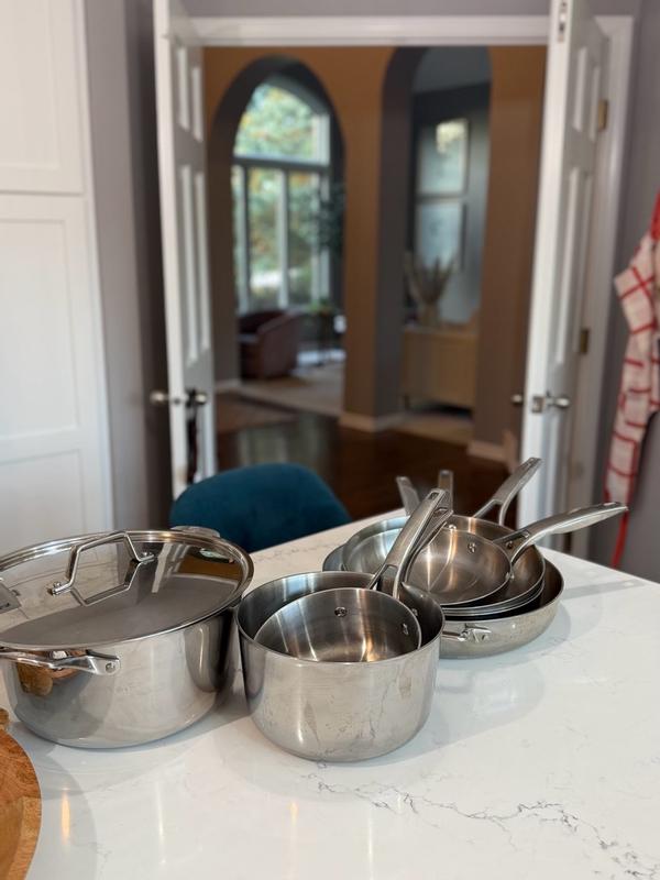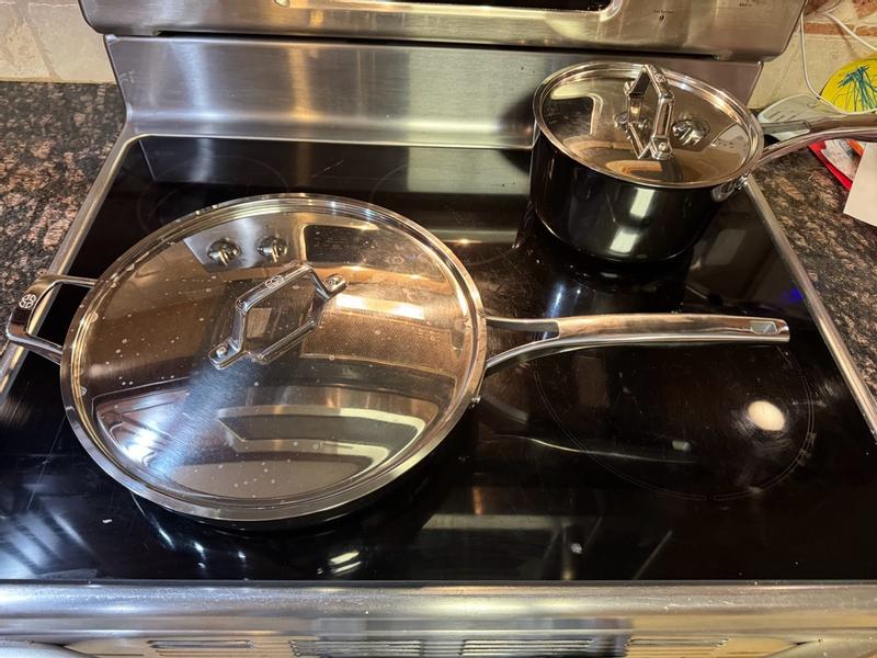 I actually bought these myself and I was pretty confident going into this decision, but I really am amazed by the cookware. I also spent 2 weeks prior to purchase getting every piece of information about stainless steel cookware available. These pans are easy to overheat, but the handles stay cool if you don't do that. Also don't use barkeeper's cleaner on these, please, for both of us. My memory of stainless steel in a commercial kitchens was a slight discoloration that is literally part of the pan. But for these, if cooked, used, and cleaned properly, shouldn't have anything actually 'stuck' onto them. I already trusted Calphalon (from there reputation historically) and the intern didn't have much criticism towards them. I'll admit it was weird not seeing an actual review on the official website, so I thought I'd throw some positive feedback. I did get 25% off and bought the 13" wok as well. The trade off is I guess they can market to me via email and text? At this point I'd just pick up a new accessory if they had it because I have everything already else anyways. This is not a paid review, I was originally going to just get the set of 3 pans lol.