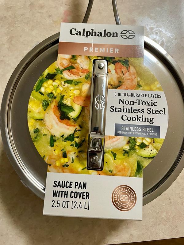 The Calphalon Premier 2.5 Quart Saucepan with Cover is a high-quality, dependable piece of cookware that delivers excellent results. The hard-anodized aluminum construction provides fast and even heating, helping to prevent hot spots and ensuring consistent cooking every time. Its durable nonstick interior makes food release effortless and cleanup quick. The sturdy stainless steel handle feels solid and stays cool on the stovetop, while the well-fitting metal cover locks in heat and flavor. Perfect for sauces, grains, and small-batch cooking, this saucepan combines durability, performance, and sleek design in one versatile pan.