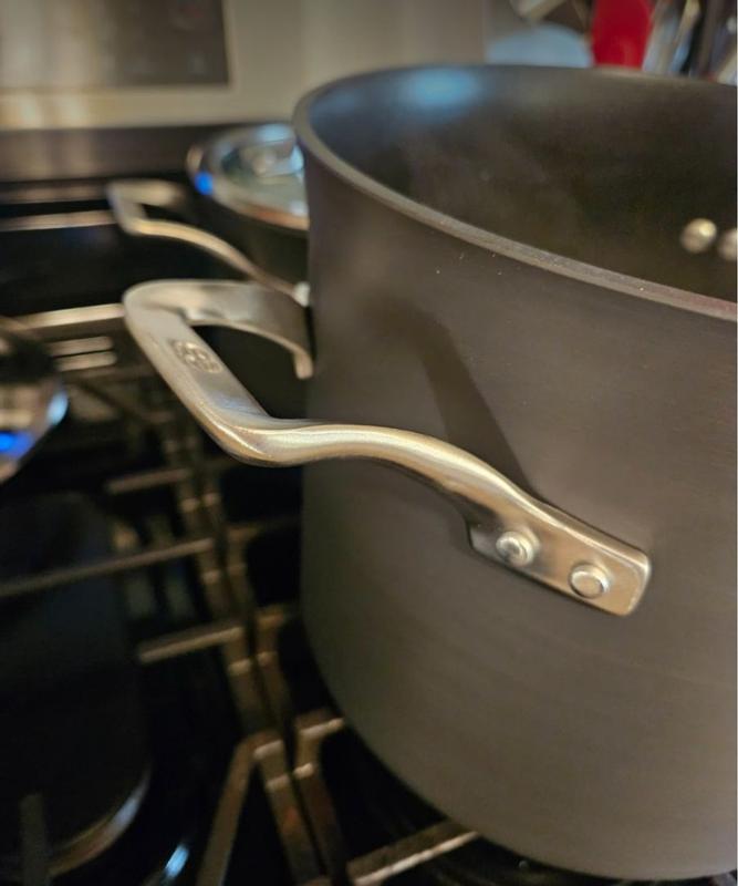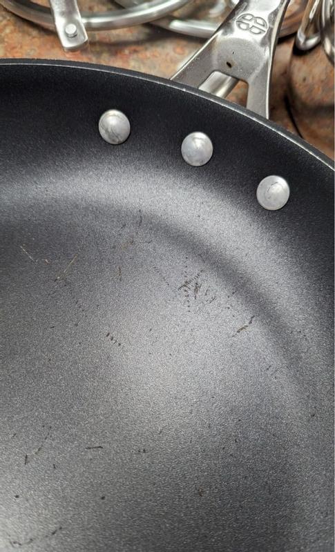 I got these as a wedding gift and I am so disappointed with their quality. I only have used the small pan 4 times and it has a huge gaping scratch in it. I never use metal utensils (even though they are marketed to be able to withstand this) and I always hand wash. These are some of the worst pans I’ve used ever. For the price tag these are not worth it. The quality is seriously a problem. I’m honestly wondering if I got a bad batch, that’s how bad these are. Extremely uneven cook times. The lids puddle up with water and have a thick lip that doesn’t come clean no matter how long you scrub at it I filled out a warranty replacement request hoping to instead get a stainless steel set as I have only used two of the pans in this set and I’m extremely unhappy with them. I didn’t get a response though. I have used calphalon forever and have always loved their products but I highly recommend you stay away from this particular set.