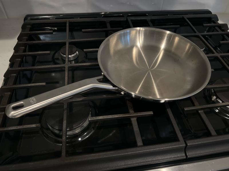 We have been loving this pan! Great stainless pan that heats up evenly and quickly. Lightweight for easy cooking. Cleans easily too. We love having a non toxic pan at home now.