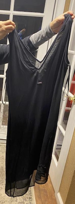 I had to go to Macy’s for a pickup. I was curious about this cover up because of all the great reviews. (I felt like I needed to have it). So,I took a detour to the Women’s Swimwear Department. The good news is I found it and tried it on. The bad news, it’s just an ordinary coverup. Nothing special at all. Worth purchasing at the on sale price point. As far as sizing, if you’re even a bit concerned about fitting into a medium (SM) or are size 12 or above definitely size up to L. I can’t image wearing this as a dress, but certainly as a slip. Best as it’s intended purpose as a cover up.