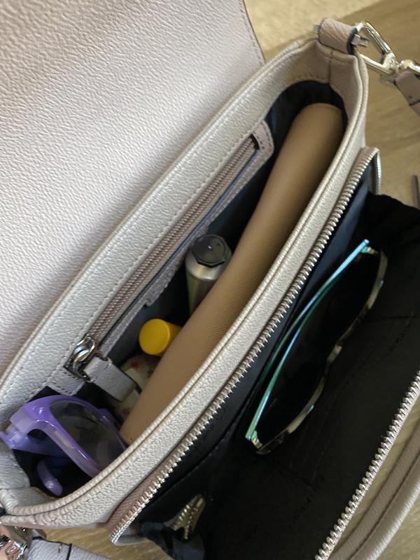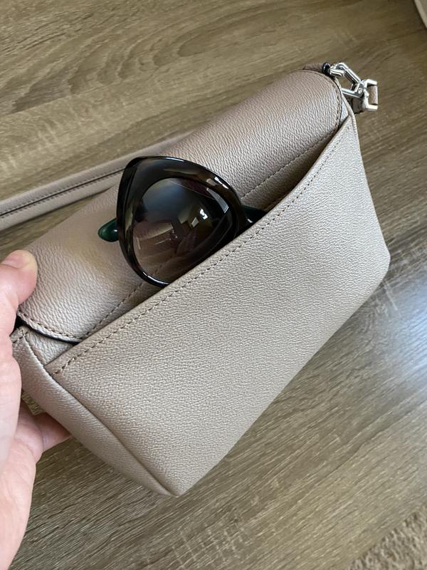 I I like this shoulder bag. It is small but has lot of space and separate zipper flap section for your credit cards etc. The only thing I did not like is material of the bag is hard and the zipper and other material should have been gold instead of steel.
