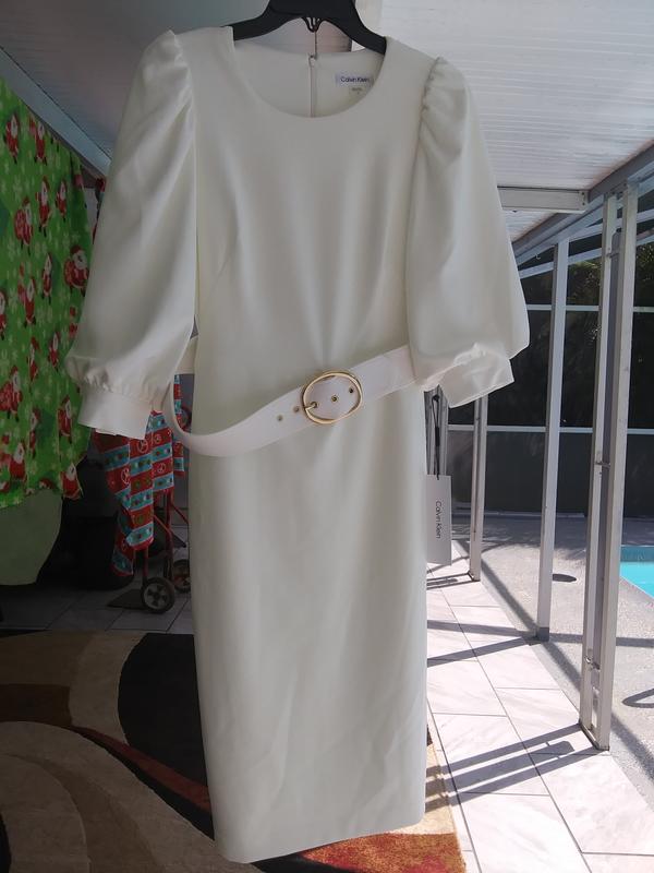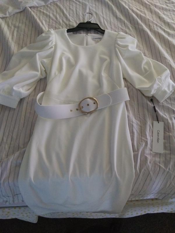 I bought this dress for a nite out with my man. I love the belted look and it doesn't take away from the fabric of the dress . it is simple yet exquisitely made. decent length and I even was impressed by how soft it was.