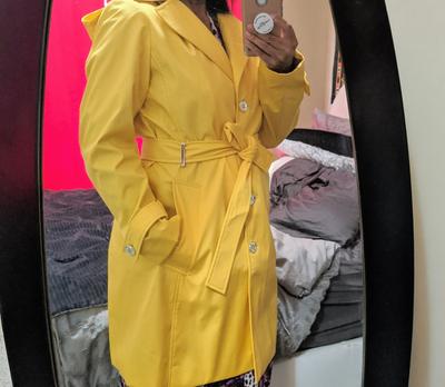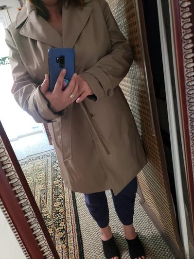 Every woman needs a nice trench coat in their closet. This is a nice one to have. Not too heavy, just right to wear with a dress or when you need something light weight to put on over an outfit.