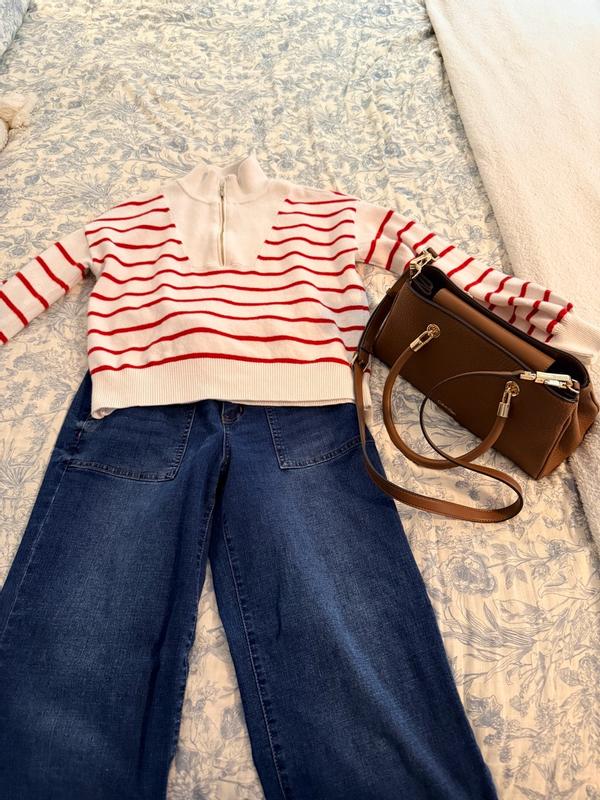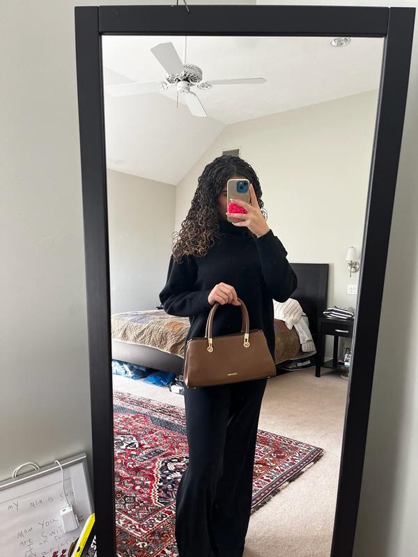 LOVE! The shape of the bag is so trendy and it’s the perfect size. Very spacious and extra bonus that it also comes with a long strap to wear different ways. The material is good quality and durable. It goes with many different outfits.