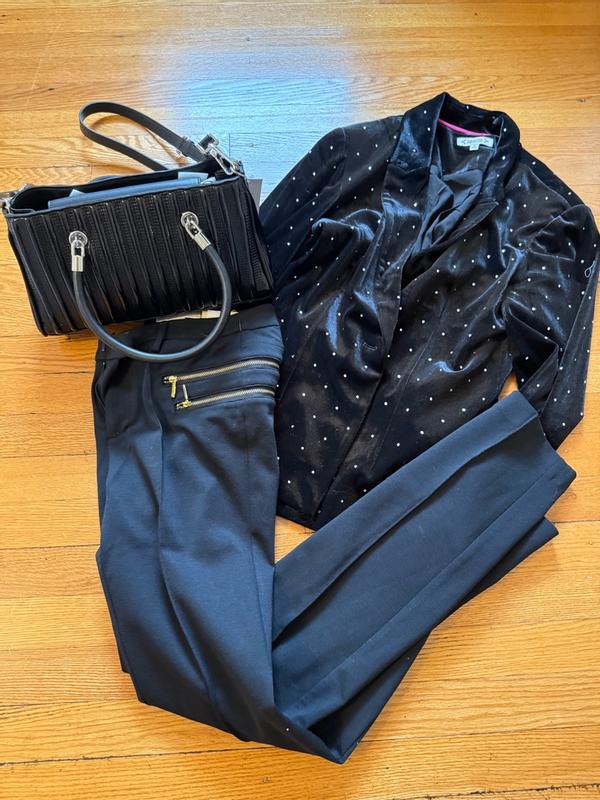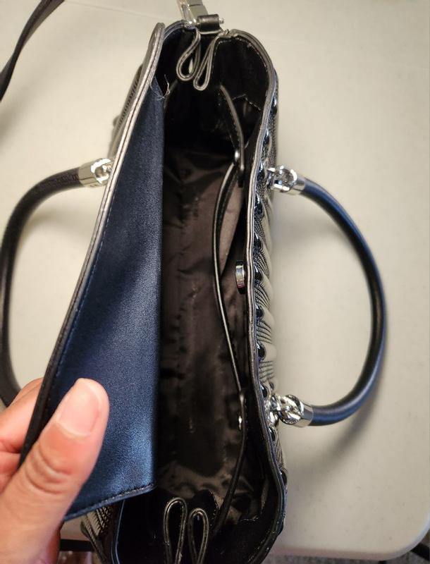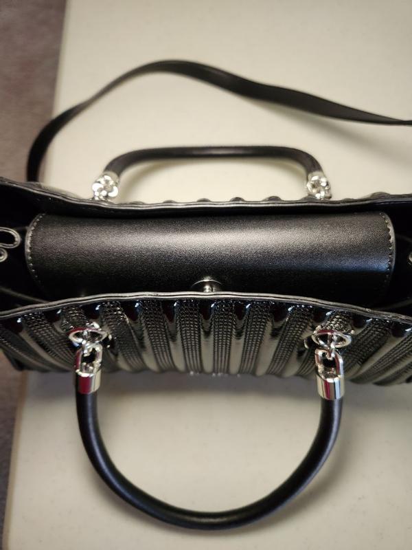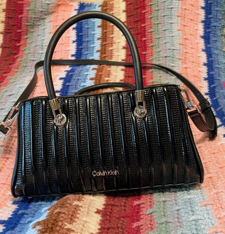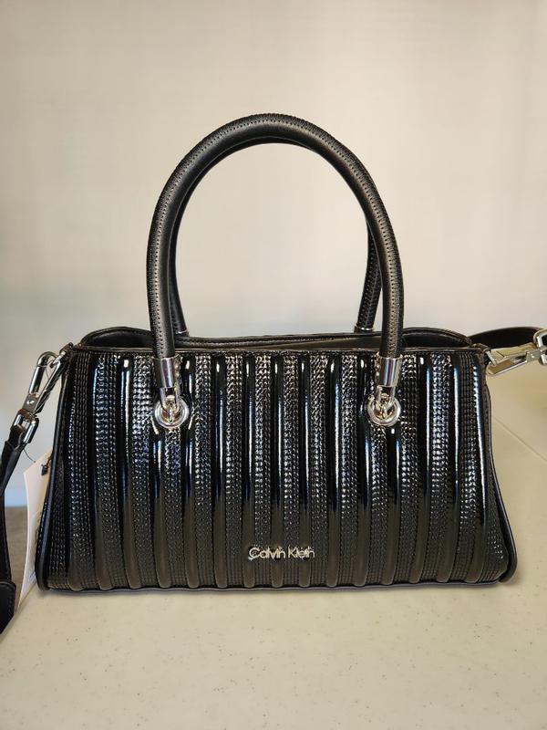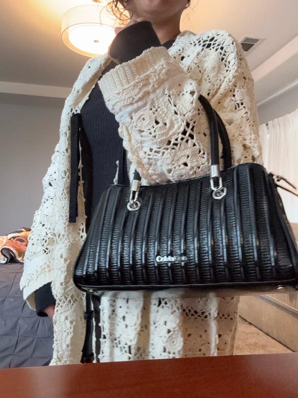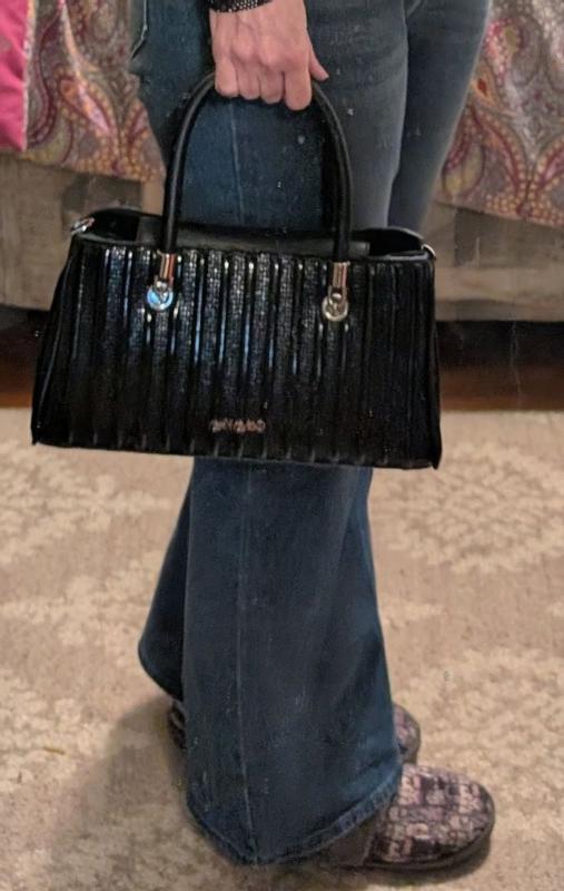 This Calvin Klein Brigette satchel is chic and useful when carrying a lot of items. It goes well with outfits for a night on the town, but can also be used for a regular every day use. The purse has a structured shape, but is not overly structured to the point that it’s stiff. The material is a bit on the shiny side for my taste, but still looks great The strap is handy when I want to be hands-free. It is also adjustable, which works great for me at 5’2”. The handles are cute for when I prefer carrying a tote. It comes with a dust bag to protect it when it’s not in use. This is a great purse!