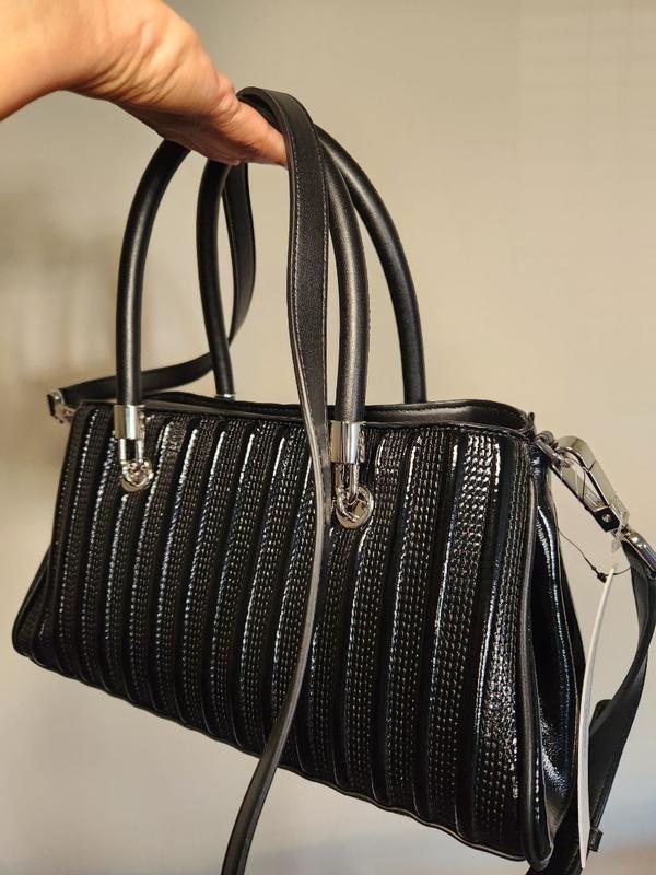 I love this bag! It is so beautiful and I like the option that I can carry it as a handbag or put it on my shoulder with the removable strap. It can also be worn as a crossbody. It feels like great quality and is very easy to style with any outfit. It looks nice with a dressed up outfit or even with a more casual look of jeans and a nice top.