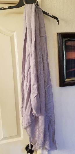 I purchased this scarf (shawl) to wear with a black jumpsuit. The item looked very nice in all of the pictures on line. The item was very thin and the material was not up to par. I returned the item.