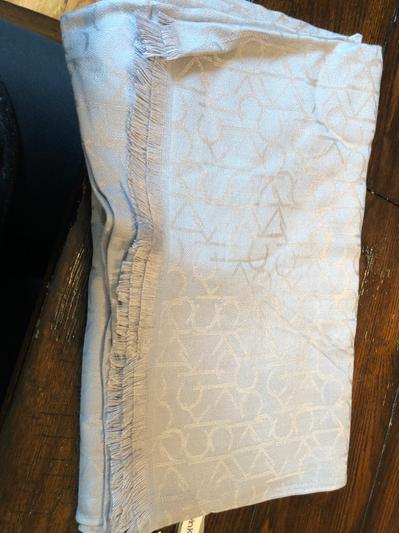This is a beautiful lightweight scarf, one that can be used as a light wrap or around the neck. The only problem is, this is truly a white scarf not off white like the picture. I took a chance that it was the color of the picture and am not sure if ill will keep it as i was truly looking for more of a cream or off white. Still the fabric is exactly what i was looking for feel and weight wise.