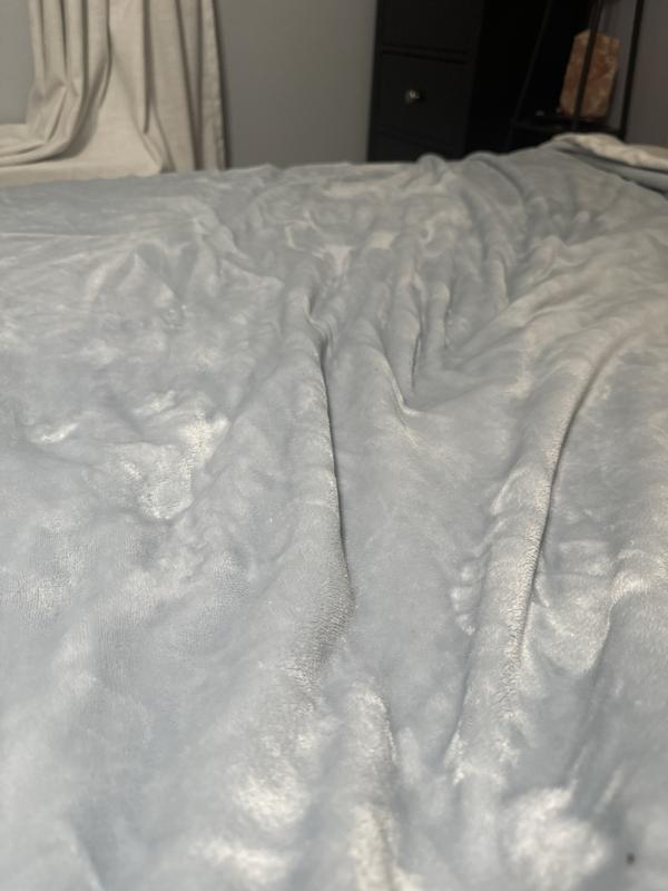 This blanket is the perfect light grey color. It’s soft and perfect size. We are loving using it since it’s so cozy! The cats are also a huge fan. Biscuit factor central!