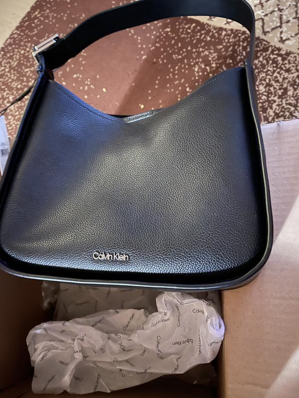 I am very happy with my new Calvin Klein Hobo Bag. The color gives all my outfits a bold pop of color. It is very roomy and I am very satisfied.