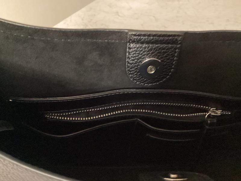 I really love the color of the bag, but not liking the belt like strap that sticks out funny when on your shoulder, also the magnetic closure doesn’t hold the pause totally shut, so for those 2 reasons I’ll be returning it.