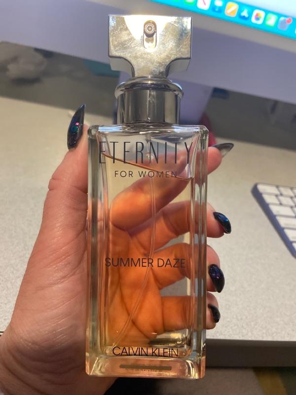 I visited the perfume counter looking for the regular eternity but tried the summer daze on my forearm. we left and walked around the store.. I kept saying omg macy's smell so great in all the depts - I thought they were spraying a scent in the AC. We sat down in the mens shoe dept and I realized that the scent was from my arm.. OMG - I MUST HAVE IT!! so I love this scent!!! new favorite!!