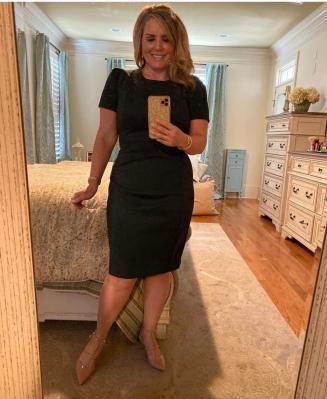 I absolutely love this dress! I am a curvy size 12 and 5’4”. I tried this on a whim thinking it wouldn’t really work, but why not? I put this on, and it fit like a glove! I received many compliments and was asked if I lost weight. It’s just that flattering! The suede texture hides imperfections, and the fabric has enough stretch to move with you and be very comfortable.