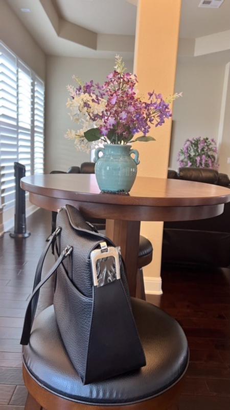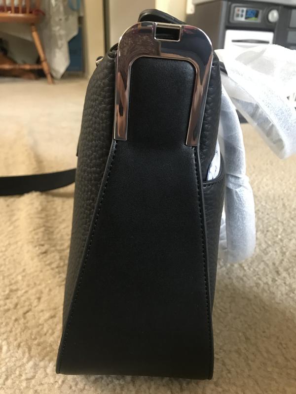 Nicely constructed bag. Seems very durable and I would imagine this bag will antique nicely overtime. The magnetic closure is very interesting and makes for quick and easy access. If you have the bag full of items and it falls over with a lot of force, for example hitting the brakes in the car, some of your contents can spill out. Other than that I haven’t had any issues. I like that the adjustable strap is fabric, feels more comfortable wearing it cross-bodied. Speaking of, bc this bag is on the large size I prefer to sling it to the back if I wear the crossbody strap. I like how it also had shoulder handles that can lay down when needed. This is also a very spacious bag. And holds it’s form, even if it’s only partially full..