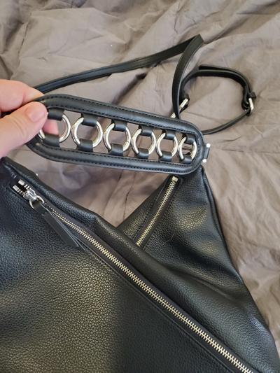 It is so pretty and I got lots of compliments. The color was not as bright as the picture online, but still super nice. The parts that make it different are also the ones that make it a but cumbersome. It takes some getting used to the angles, and the outside pocket is kind of dumb. You have to really support the bag when you opem that zipper so that your stuff doesn't fall out right then and there. It's not like any of your other purses and you'll feel happy when you look at it. I got mine on a good sales price, i wouldnt pay full price for it, it's too cumbersome for that.
