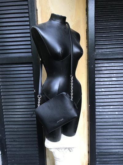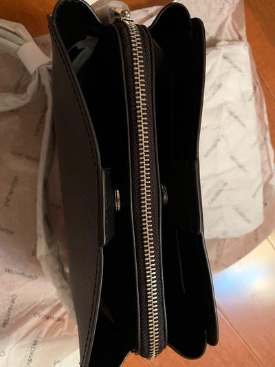I love the style color and size of this bag. However I hate the fact that it is plastic. I did not catch that on the description that it was made of PVC material. I don’t like the feel of plastic, I didn’t pay this much for plastic, and it weighs a ton for a small bag. This is a miss Calvin Klein! It’s going back.