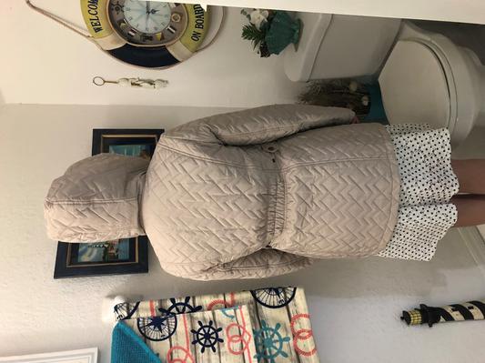 I'm preparing for my upcoming travel to upstate New York. l have a warmer jacket from Calvin klein but this one and the Oat color just caught my eyes. so pretty and comfortable. bought at a real sale price. beautiful jacket.