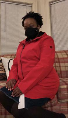 I got it in pink love the color. The material is thick and does not feel like a raincoat. Works for me as I can use it as a Fall jacket. Don’t like the shape.