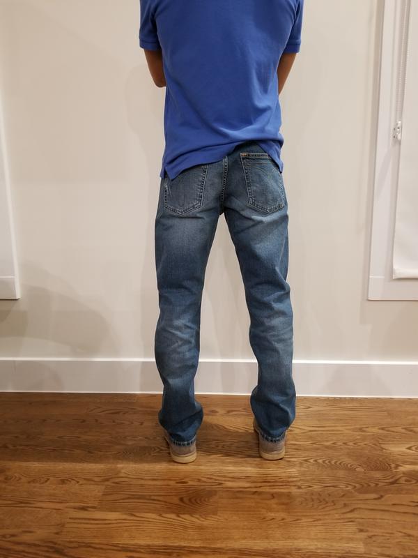 Finding a good pair of jeans that fit well and aren't cut too skinny or too wide, but these jeans fit just right. They have a great worn in feel that usually takes years to accomplish. The only thing I would change would be the tacky white "Calvin Klein" tag at the belt line. I would give these jeans 5 stars if it were a more subtle leather tag instead, even better if it were an additional loop to put my belt through!