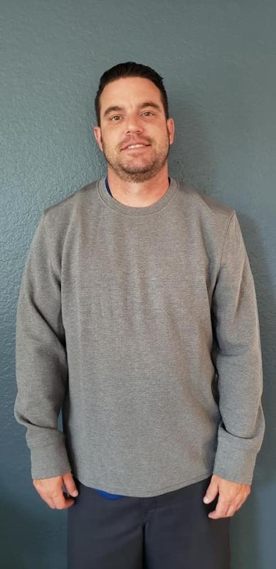 This is a a great waffle knit pullover. It is a better quality than my usual pullovers that I own. I like the reinforced shoulders seams. It is thick and well made and is made in a comfortable soft material. The color gray is classic and matches my casual clothes.
