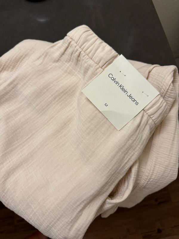 These Calvin Klein gauze pull-on shorts are perfect for warm weather. The fabric is soft, breathable, and feels great against the skin. I love the relaxed fit — it’s flattering without being too baggy, and the elastic waistband makes them super comfortable. Great for lounging, running errands, or throwing on over a swimsuit. They’re easy to style and have become a summer go-to.