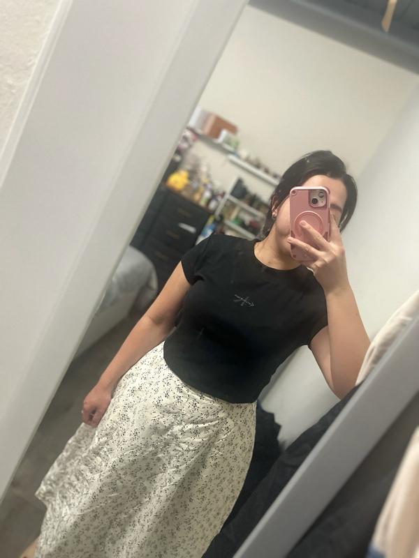 This top is a really great quality, it’s not too short which is an issue I have with a lot of baby tees, and the arms aren’t too tight either. It goes with so many different outfits and is fairly timeless, I’m excited to keep it in my clothing collection for a long time.