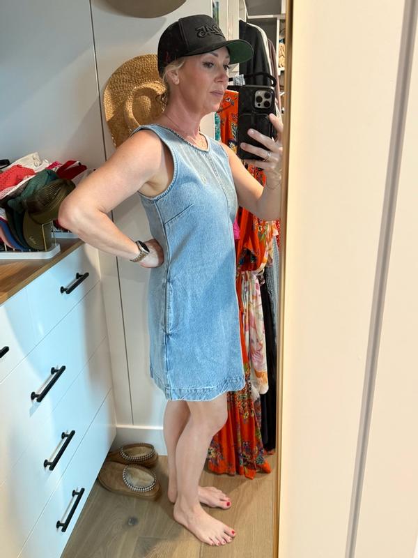 This is a great piece for transitioning from spring to summer. You can easily layer a shirt underneath and pair it with boots for cooler days. Even though it’s denim, it’s surprisingly comfortable, and the fabric quality is excellent. My only minor complaint is that I wish the neckline were a bit lower.