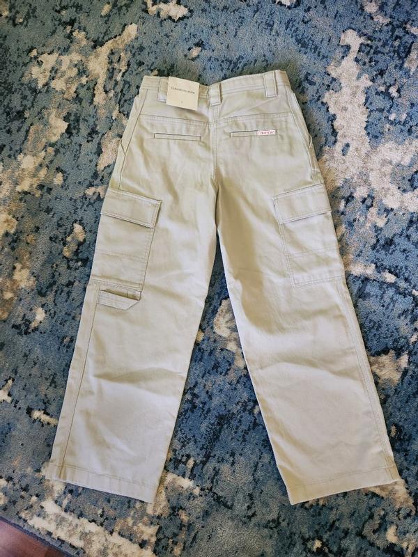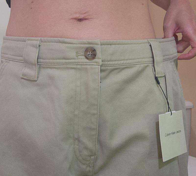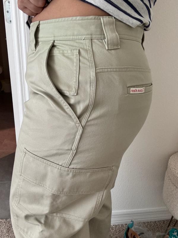 The craftsmanship in these pants is fabulous! The stitching and material feels so luxurious. I love the style and many pockets. They give you an extra button as well! The sizing runs big in my opinion, the size 2 was 15 inches across which would fit a 30 inch waist. So they ran large on me. I would venture to guess most of the Calvin Klein jeans run a bit on the larger size but that would be an assumption based solely on how these fit. The khaki color is true and so soft on the skin. A gorgeous trendy pair of pants.
