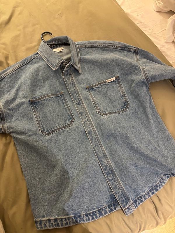 this calvin klein oversized utility shirt is really oversized, but in a good way. it’s super roomy and gives off a relaxed, casual vibe. the denim feels durable but still comfortable enough to wear throughout the day. i’ve been wearing it over leggings or styled as a light jacket, and it works well both ways.