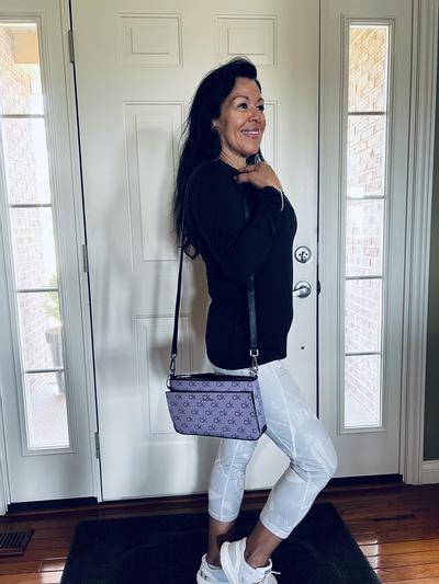 I was worried it would not be big enough to hold the items that I normally take with me when I go out however, it was just right for what I needed to do a quick errand. The strap is removable, so you can change it out for either a long strap as a crossbody or to hand carry if necessary. I'm usually drawn to a softer leather purse however, this bag does serves it's purpose if you like a small light bag. I had been looking for a bag with zippers on the outside to hold my phone and this bag had a magnetic closure that I loved and it fit into the space just perfectly.