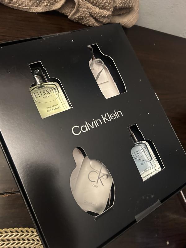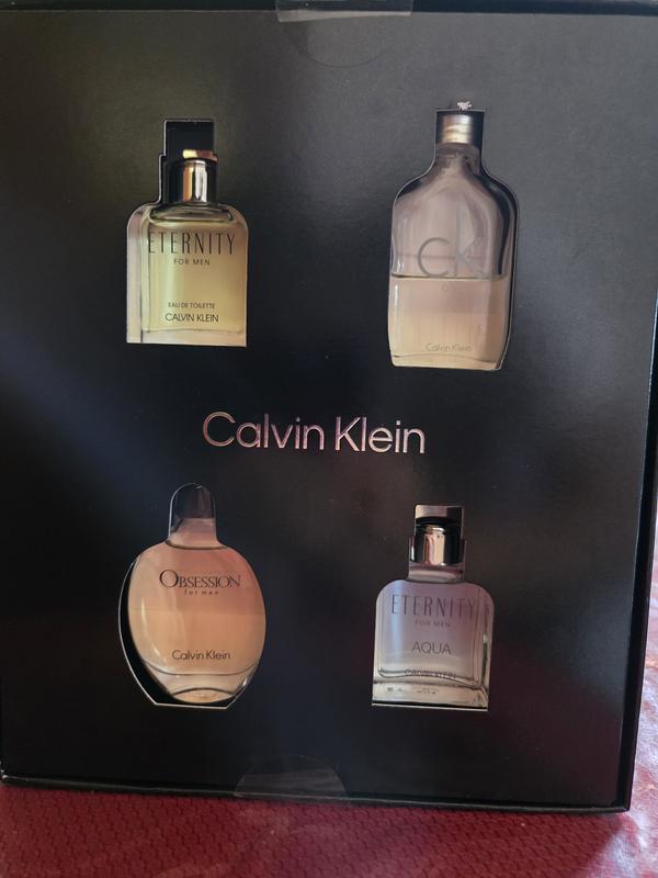 - Eternity Eau de Toilette, 0.5 oz.; Eternity Aqua Eau de Toilette, 0.5 oz.; Obsession Eau de Toilette, 0.5 oz.; CK One Eau de Toilette, 0.5 oz.