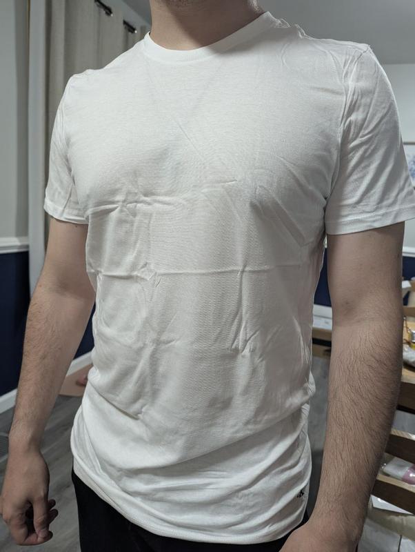 This t-shirt isn't as comfortable as previous generations of Calvin Klein t-shirts. The fit is odd in the armpits and at times these feel like I've got the shirt on backwards (even though that's not the case). I also find the cloth tags along the bottom seams annoying.