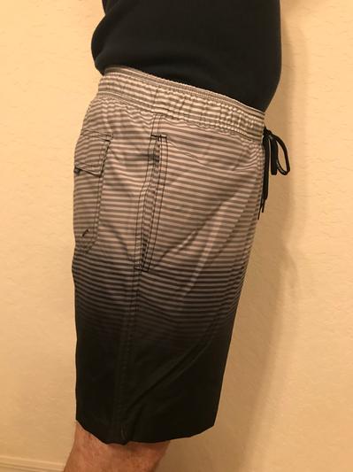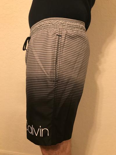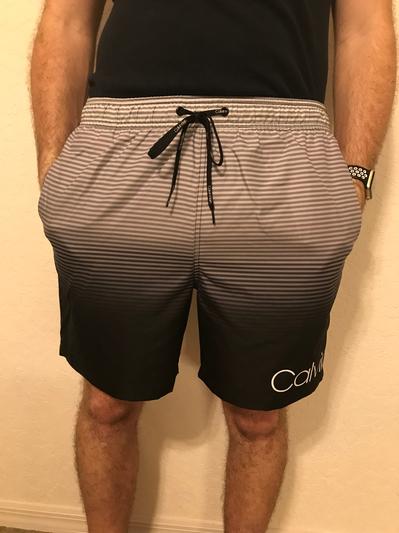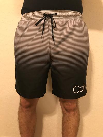 The swim shorts are very comfortable, and feature a long string to tie as needed. The gradient design looks nice in person, however after a few washes the Calvin Klein logo has started to show some wear. Overall they are a great pair of swim trunks.
