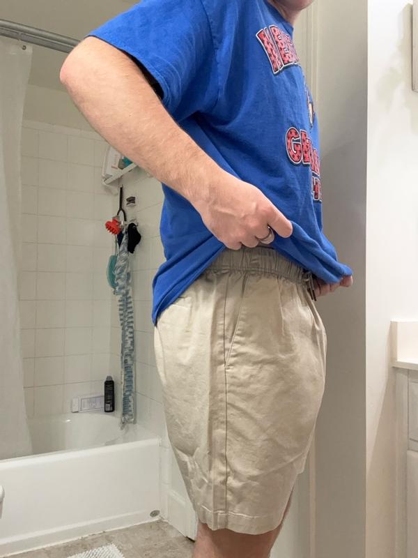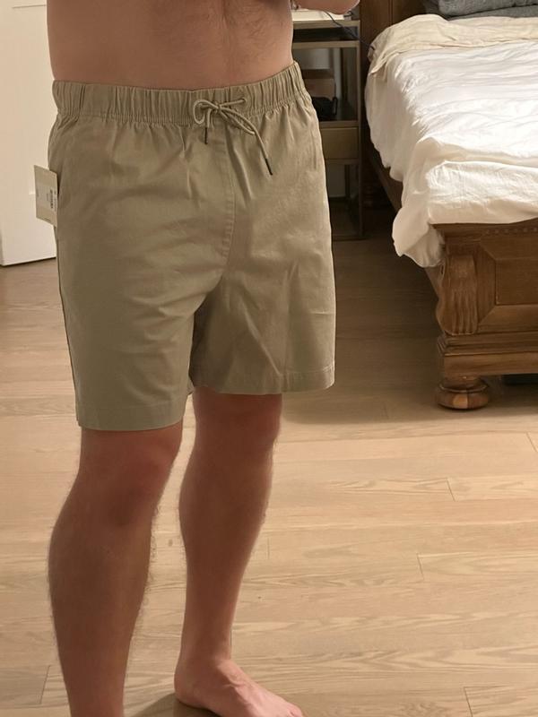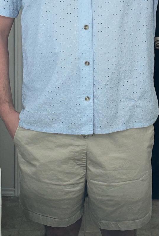 I really like these tan shorts! They work well with so many outfits. They have an elastic waistband as well as drawstrings to tie them up so they fit just right and are very comfortable. The material fees light but durable and has great breathability. My new favorite pair!