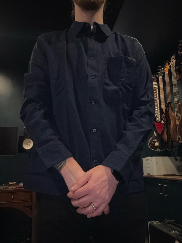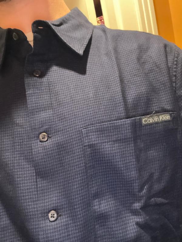 Confident style meets versatility with this Calvin Klein button-down shirt, designed in a yarn-dyed houndstooth pattern. A point collar and a straight hem with a woven logo label completes the polished finish.