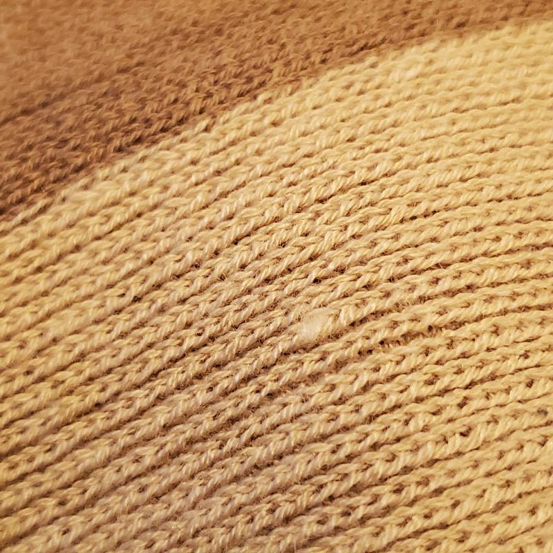 Item arrived with many snags. Even at discounted price it is a reasonable expectation to receive a knitted scarf with out snags and runs or threads tied in knots to prevent further damage.l