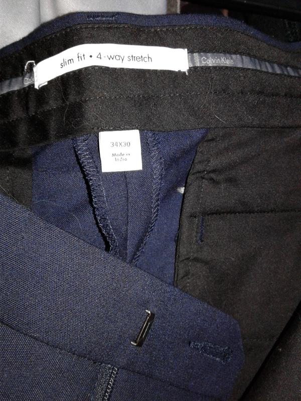 Returned pants labeled Calvin Klein attached to belt loops , but inside pants H&M These pants are miss leading customers thinking they are buying Calvin Klein but you receive H&M's pants So returned and was able to order pants made by Calvin Klein