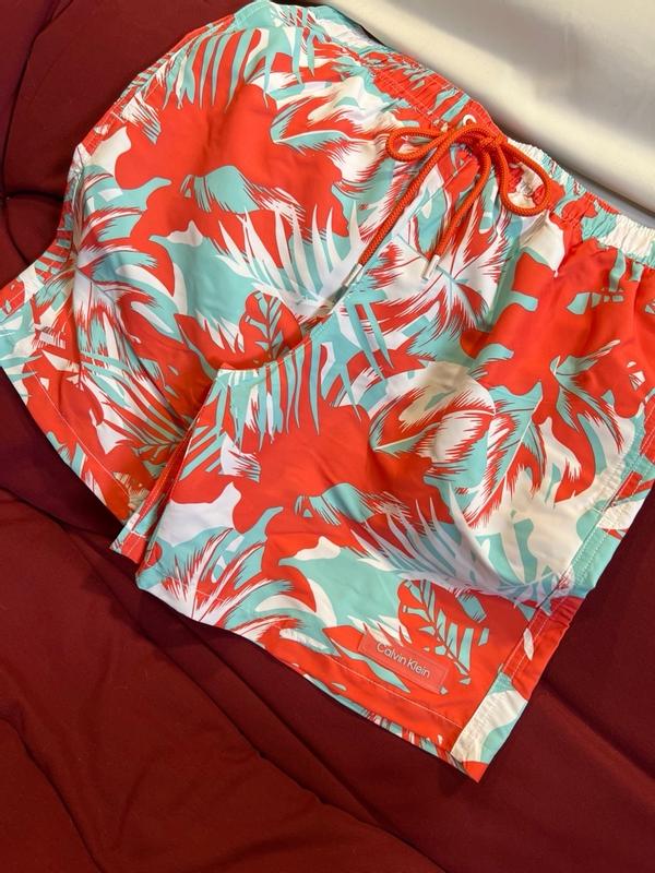 Do you want to look stylish at the pool this summer? Check out how nice my new Calvin Klein swim shorts are! The perfect fit that super comfortable with the perfect length. The inside of the shorts has a built in mesh lining to hold everything in place! The feeling is great with the plastic Calvin Klein logo design on the bottom left leg on the shorts. I got a bunch of great compliments while at the swimming pool this past weekend. The pattern is a perfect match to all my accessories. These dried easy without leaving the water dripping from them when I got up out of the pool. I'll definitely be purchasing a pair of these after wearing this one.