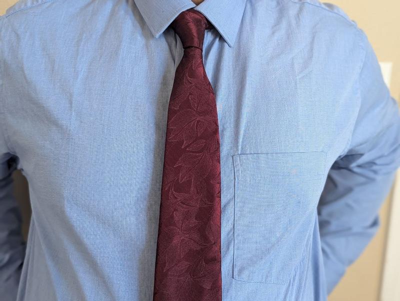 This is a very attractive tie. The color is perfect, not too bright but definitely not dull. It feels nice and smooth to the touch. It pairs well with many outfits to jazz them up.