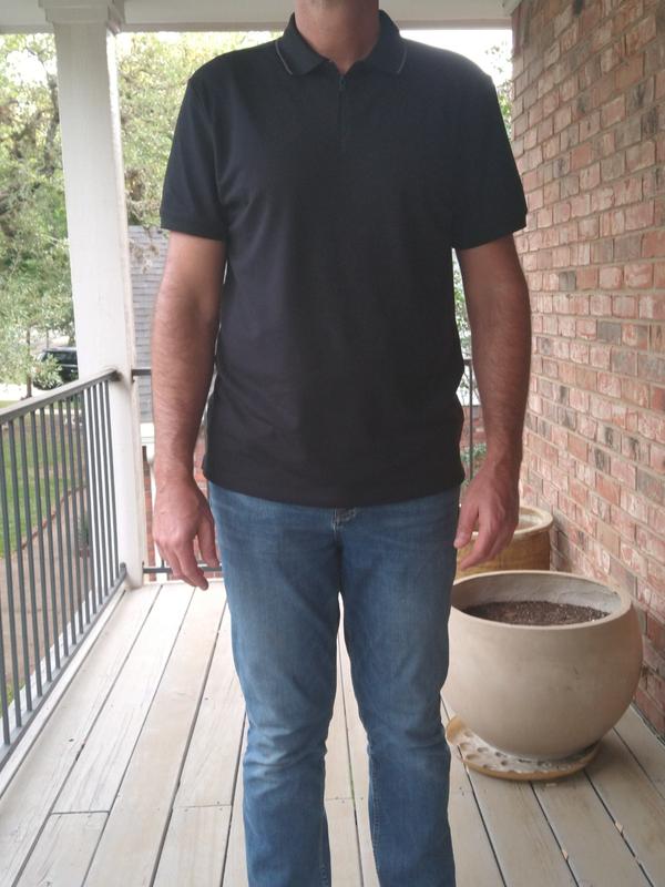 This Calvin Klein Zip Polo is seriously my favorite new shirt. First off, I really liked the look of it. The simple logo, the cut of the collar and sleeves. But the zipper is what really caught my eye. With a million button polls, I thought that was cool. After I tried it on and wore it the first time, out on a humid Florida day I was hooked. The fabric wasn't clingy or hot. I felt cool and comfortable. The cut is high quality and perfect for my 6ft plus frame. This shirt is awesome.