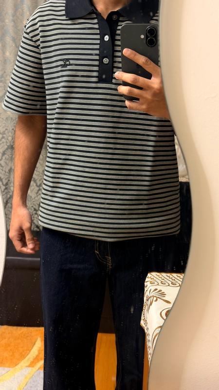 This is a clean and classic polo that looks sharp and feels comfortable. The fabric is soft but structured, so it keeps its shape and doesn’t feel sloppy. The stripes give it a timeless style that works for casual days or something a bit nicer. Fit is true to size and breathable enough to wear all day. Overall it’s a simple, stylish polo that’s easy to wear and looks great.