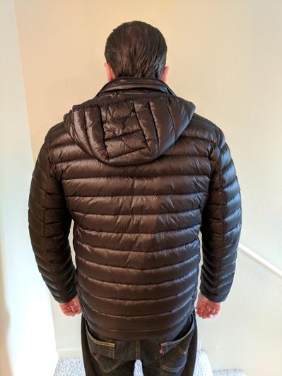 Overall, the jacket was excellent quality, lightweight, comfortable and looked fantastic. The inner liner was gave an extra layer of warm plus was super stylish. The hood was easy to remove but looks stylish on, it was not a bothersome hoodie. The material and workmanship was high quality, the down material kept me warm but was lightweight and seemed airy when inside under warm temperatures. I love the soft inner layer that zips up snug. The jacket can be rolled up and the material bounces back into shape. The sizing is a bit small, but the fit is perfect for me. I can easily wear a sweatshirt underneath. I feel very stylish in this jacket. As usual, my experience with Calvin Klein is always perfect!