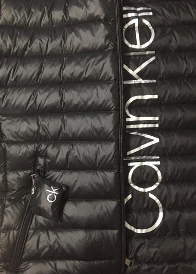 I got this for my son who lives in Boston where it’s already gotten cold enough for a winter coat. He loves that it’s lightweight, but keeps him warm. It’s packable and comes with a storage bag - great for travel. It does have a fleece inner bib, so there are 2 layers of zippers - this does add a little bulk when folding it up. The material has a slight sheen and there is a large Calvin Klein silver logo on the INSIDE of the jacket. Hood is removable which is a nice feature. All in all a stylish, yet warm coat!