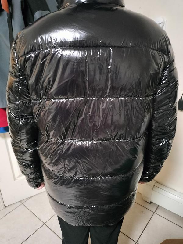 This jacket is mighty shiny! The fabric is plastic like, and because of the material, it doesn't keep you warm hardly at all. If you like to wear a garbage bag stuffed with dollar store comforter fill, you'll love it. The durability is ZERO. I'm scared to walk by anything sharp within 10 ft radius. All in all, you're paying for a brand name that believes you're dumm enough to buy a cheaply sewn label to an overpriced yard bag.